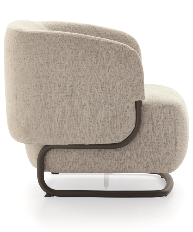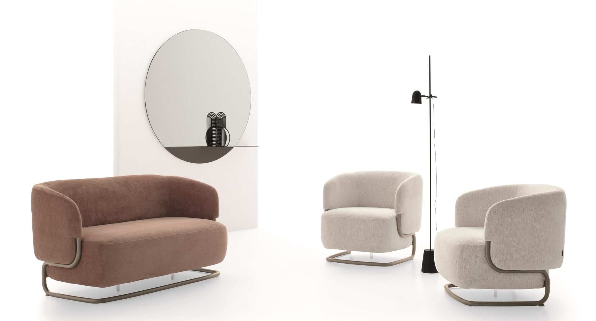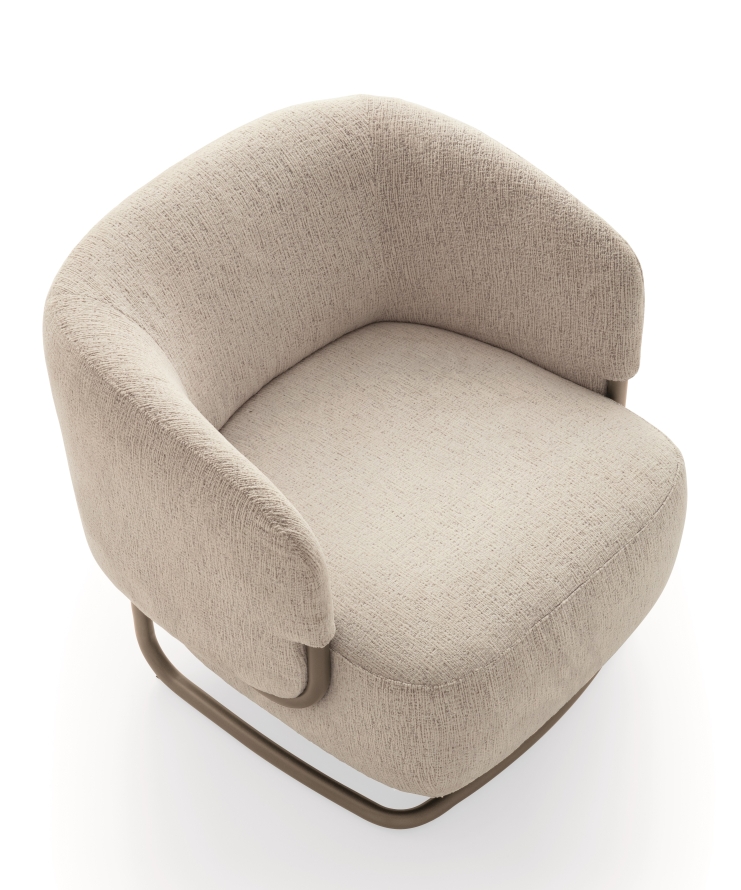 Marabù nasce da un contrasto sia funzionale che estetico. Una seduta morbida e accogliente, il cui corpo voluminoso è sostenuto da una struttura in tubolare curvato che sembra farla fluttuare a mezz’aria.
