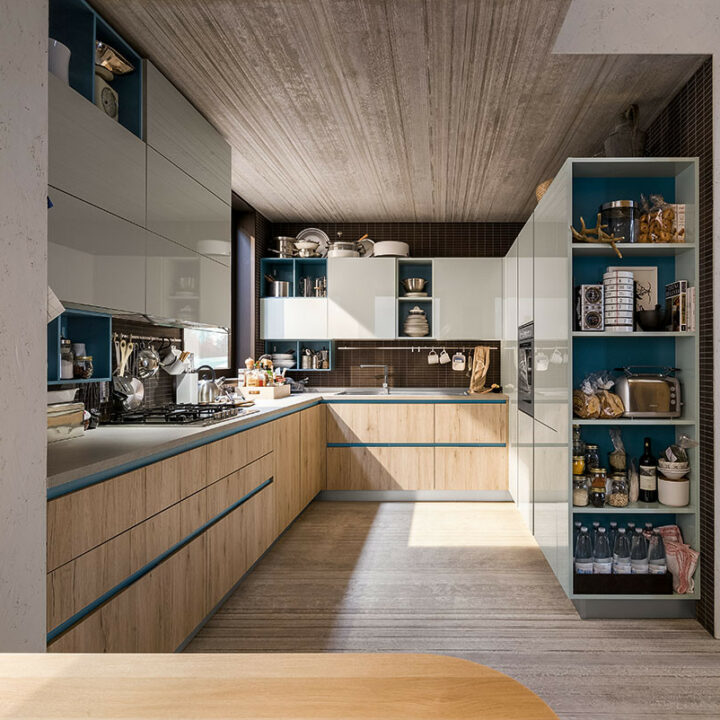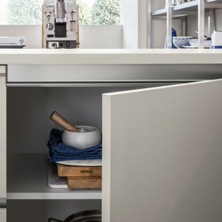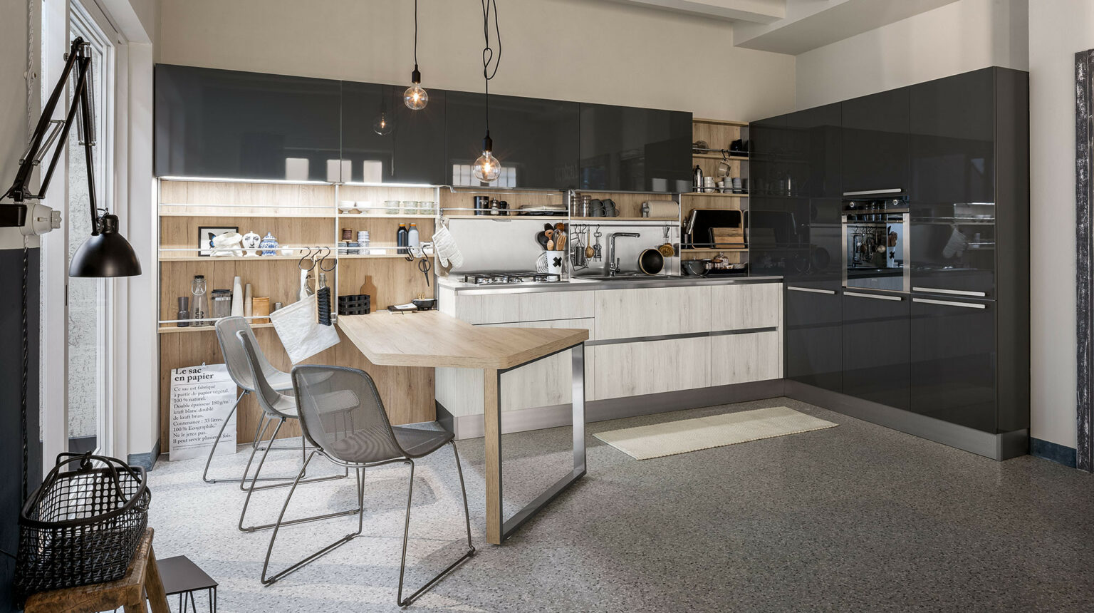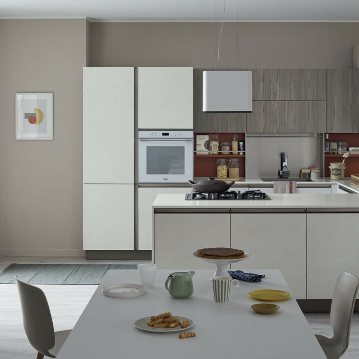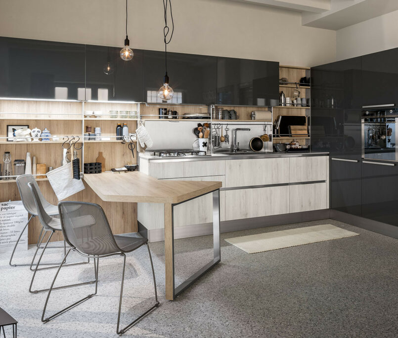 START-TIME: partire con il piede giusto, conferendo allo spazio cucina il sapore giovane di un design dalle linee pure, vestito di colori cool e finiture legno in trend con le tendenze che guardano alla naturalità. La presa integrata di Start-Time si aggiunge al sistema di apertura con gola di Start-Time.Go che utilizza la comoda maniglia a incasso, al sistema con profilo J e alla ‘tradizionale’ maniglia.